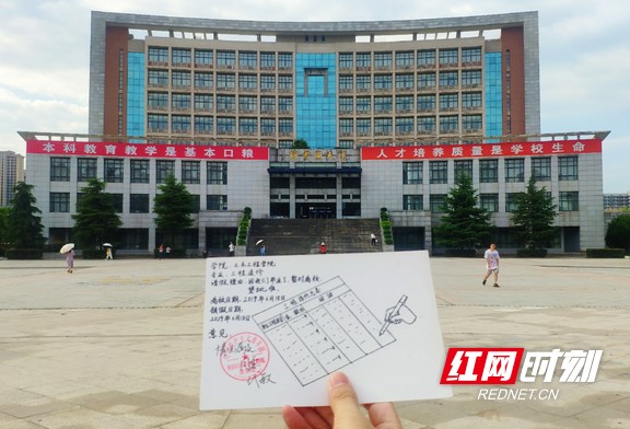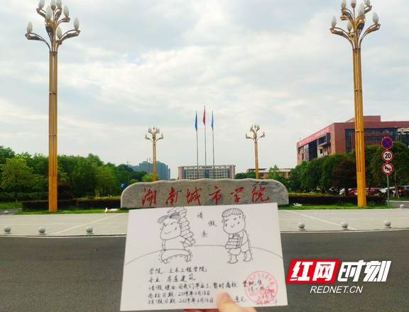 红网时刻益阳6月25日讯(通讯员 徐湘嫔 邹盼)毕业季,jdb电子游戏官方网站土木工程学院为了让毕业生们留下自己独特的青春印记,制作了一批具有专业特色和校园情怀的请假条。请假条上写着请假的时间为十年,代表着毕业生们与母校的十年之约。图为房屋建筑专业请假条与学校南门。