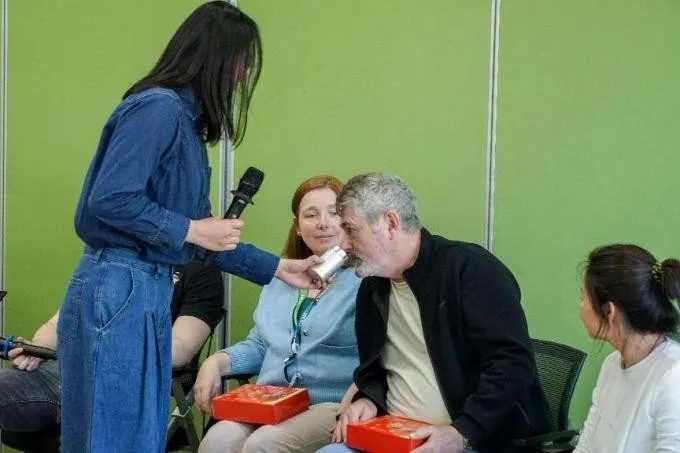 参与师生各自准备了带有文化元素的盲盒。首先是中国学生和老师们纷纷登台,用流利的英文介绍众多中国元素,如中医中药文化中的拔火罐、传统中医针灸、药碾子、刮痧板等,传统节日文化中的五彩绳,茶艺文化以及研墨技艺等蕴含深厚文化底蕴,还有辣条、旺旺零食、发条青蛙等上世纪七、八十年代的零食和玩具……每个盲盒深深地吸引着现场师生。在体验环节,师生们依次对盲盒中的物品进行互动体验,从而更加真切地了解这些物品的用途。“刮痧板玉制和骨制在用途上有什么区别?”“乌龙茶和英国茶的味道非常不一样。”“虽然很多物品我都听说过,但都是头一次见到实物。”外籍师生兴奋地说道。
