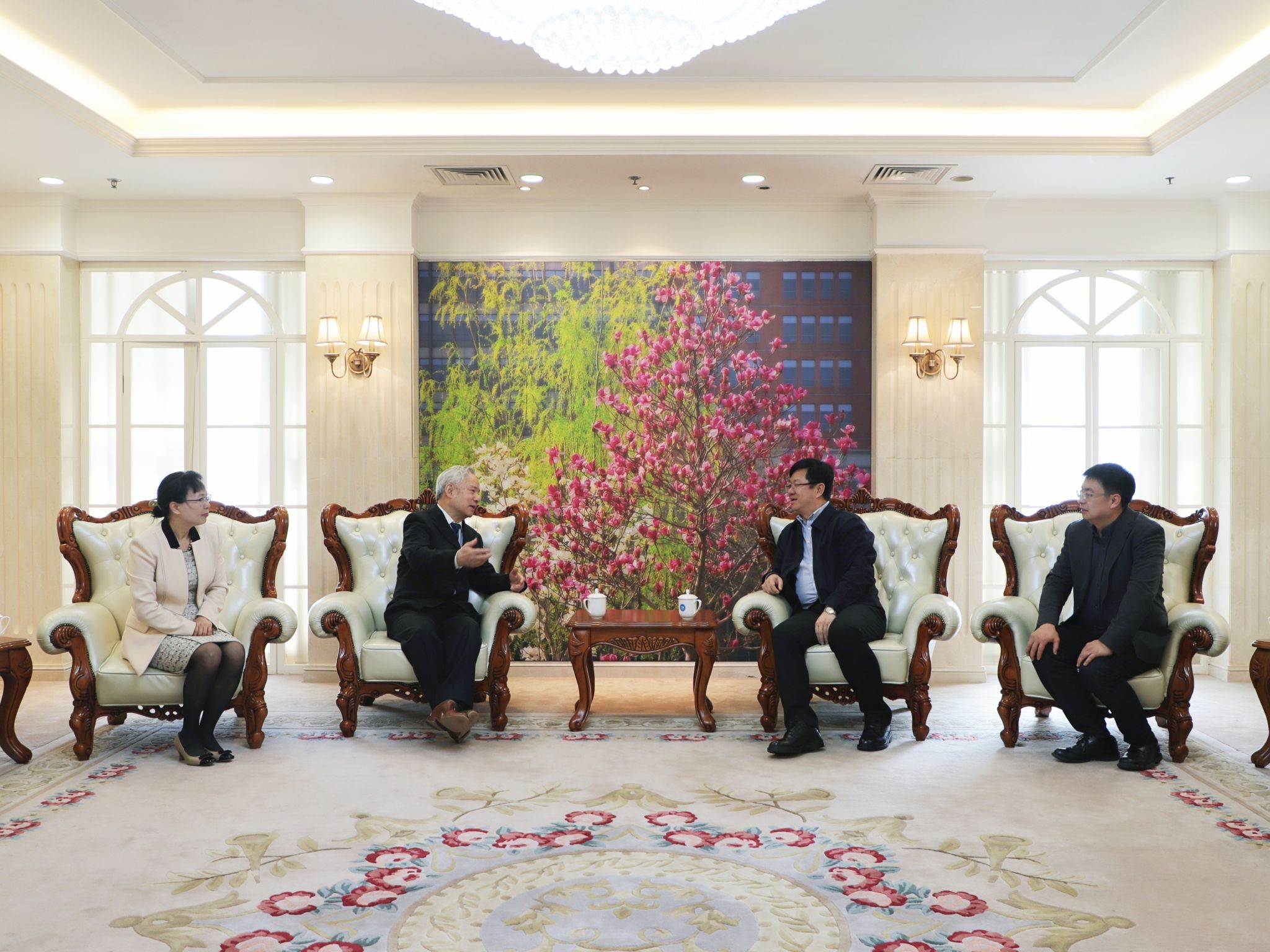 岑建君理事长曾任教育部国际司司长、中国驻美大使馆教育处公使衔参赞等职,在教育与国际交流领域有着丰富经验和卓越成就。报告会开始前,校党委副书记乔俊飞会见岑理事长,简要介绍了学校及学院办学情况,并就当前国内国际形势、高等教育国际交流合作等话题进行了深入交流。