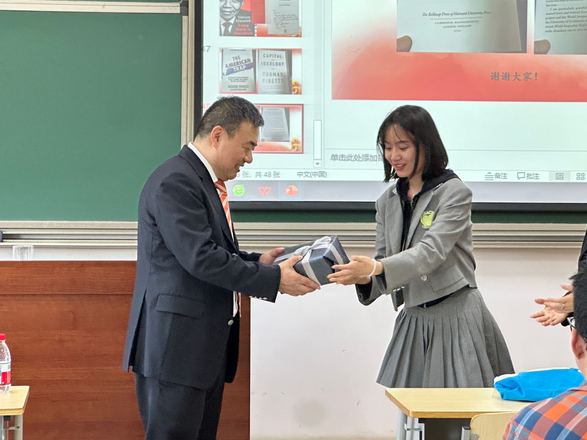最后,吴先生向学生推荐了三本书籍《Long Walk to Freedom》,《The American Trap》,《Capital and Ideology》,表示通过阅读可以帮助学生在纷繁信息中保持清醒判断和独立思考,学会认识世界,明确如何努力实现自己的目标。并鼓励学生提高知识宽度,以人类命运共同体意识学习实践,用更高的视野和包容心态投身于国际事务中。