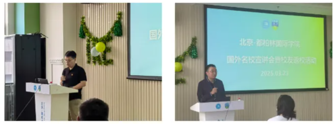 2025年3月23日,北京-都柏林学院校友联络处成功举办国外名校宣讲会暨校友返校活动。本次活动汇聚了美国南加州大学、约翰霍普金斯教育学院、英国格拉斯哥大学、悉尼科技大学和英国兰卡斯特大学的中国区招生代表以及校友联络处理事会成员等优秀校友,围绕学业规划、留学申请、海外生活、求职面试、职场发展等核心问题,为学生们答疑解惑,给予全方位、精准化的专业指导,助力他们明晰未来的留学、求职之路。70余名学生在第四教学楼705教室参加。