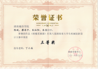 近三年,机械与电气工程学院学生参加全国大学生机械创新设计大赛、全国大学生工程训练综合能力竞赛、工业设计大赛、挑战杯、互联网+创新创业大赛的省级以上学科竞赛获奖10余项,其中国家级一等奖1项、三等奖2项,省级一等奖1项、二等奖2项、三等奖4项。