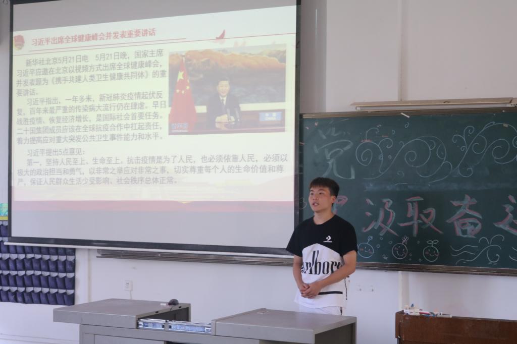 本次政治学习从“奋斗百年,启航新程”、“知史爱党,知史爱国”、“砥砺前行,书写华章”、“筑梦人生,放飞梦想”四个版块进行深入讲述剖析。本次政治学习首先向大家提问了“10道题”,从习近平主席的讲话中得到了答案——人民。“人民”二字重千钧,我们党的根基在人民,血脉在人民,力量在人民。为中人民谋幸福,为中华民族谋复兴的初心和使命,中国共产党人不驰于空想,不骛于虚声,一步步实现美好蓝图。之后,向同学们介绍了百年前那些为共产主义事业奋斗终身,甚至牺牲的革命先烈、现代有着重要贡献的科学家等,介绍了他们那些令人感动的故事以及伟大的成就。让同学们更加了解党的建设以来的重要贡献者,学习他们爱党爱国,无私奉献的精神。同时,也讲述了jdb电子游戏官方网站第四次代表大会开幕的内容。最后,向临近期末考试的同学们介绍了学分绩点和考试的纪律问题。希望同学们可以端正自己的考试态度,严格遵守考试纪律。