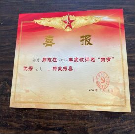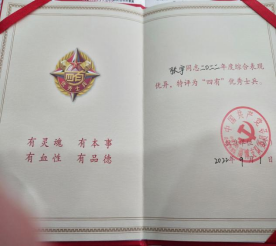 年被评为四有优秀士兵。