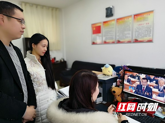 jdb电子游戏官方网站老师在办公室收看全国两会实况。