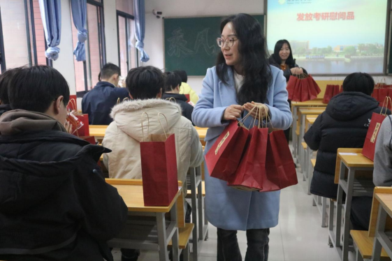 励志书签在内的慰问品,每一份礼物都承载着学院的深切关怀与殷切期望。学子们接过慰问品,脸上洋溢着感动的笑容,纷纷表示真切感受到了学院的温暖与支持,将把这份关怀转化为冲刺备考的强劲动力,全力以赴向目标奋进。