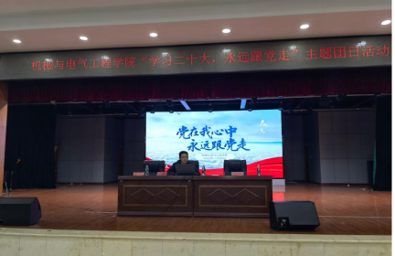 2022年11月28日晚19点我院在新食堂三楼活动中心开展“党在我心中,永远跟党走”主题团课,本次团课由机械与电气工程学院党委副书记易志明授课,我院团委学生会全体学生干部、21级和22级全体班长及团支书共同参与。