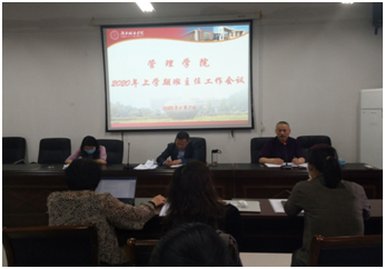 会议开始,管理学院党委副书记王润华做了三个方面的主要工作:第一,就业分析,提出了当前学院2020届毕业生的就业情况,目前我院毕业生就业情况不乐观,学生普遍缺乏就业规划,且管理学院女生多,就业相对比较困难;第二,考研情况,管理学院学生考研专业竞争大,跨专业多而且许多学生并不接受调剂;第三,王书记再次强调毕业班班主任工作职责,提出疫情期间,更需要班主任多与学生谈心谈话,经常性下寝室。