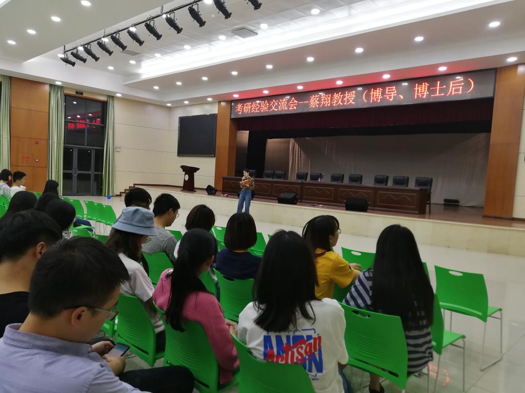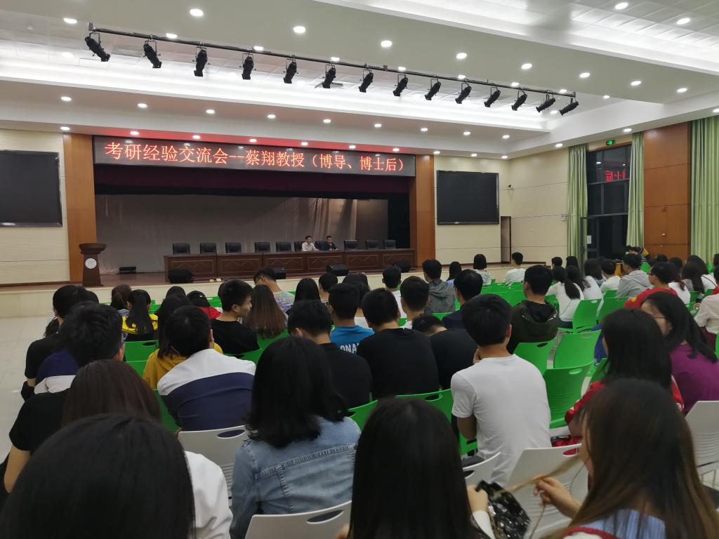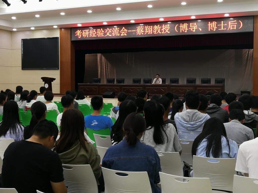 2018年4月18日晚7:00,管理学院就业与考研经验交流会于新食堂三楼学生活动中心举行,本次交流会由桂林电子科技大学博士生导师蔡翔教授进行主讲,jdb电子游戏官方网站管理学院党委副书记贺望林主持,出席本次交流会的有管理学院学工办主任王方俊、辅导员张力、14级考研录取学生代表以及15、16级有考研意向的学生。