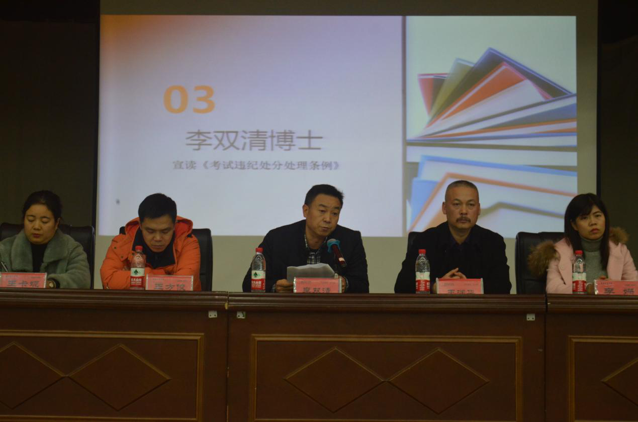 会议由学工办负责学风建设工作的张力老师主持。副院长李双清老师宣读了《jdb电子游戏官方网站考试违纪处分处理条例》,解读了考试作弊行为的认定和处理办法。党委副书记王润华老师解读了国家考试入刑处理条例,对公平诚信考试提出了要求;同时,对2019届学生寒假社会实践安排、社会实践报告做了部署;强调了学生寝室用电安全、寒假放假出行交通安全、学生自身财产安全的安全注意事项。