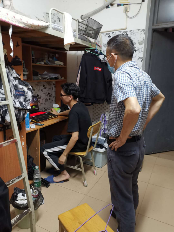 5月18日晚上,管理学院党委书记徐习军深入学生宿舍检查指导宿舍卫生安全工作,走访慰问新学期返校学生。学院党委副书记王润华、学工办全体辅导员参加检查。