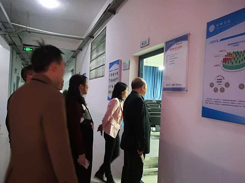 2018年11月6日下午5点,审核评估专家南华大学刘升学副校长走访管理学院。管理学院书记汤腊梅、院长孙倩、副院长汤勇陪同刘升学副校长检查了管理学院实验室,参观了管理学院文化长廊,了解管理学院的办学情况与办学特色。