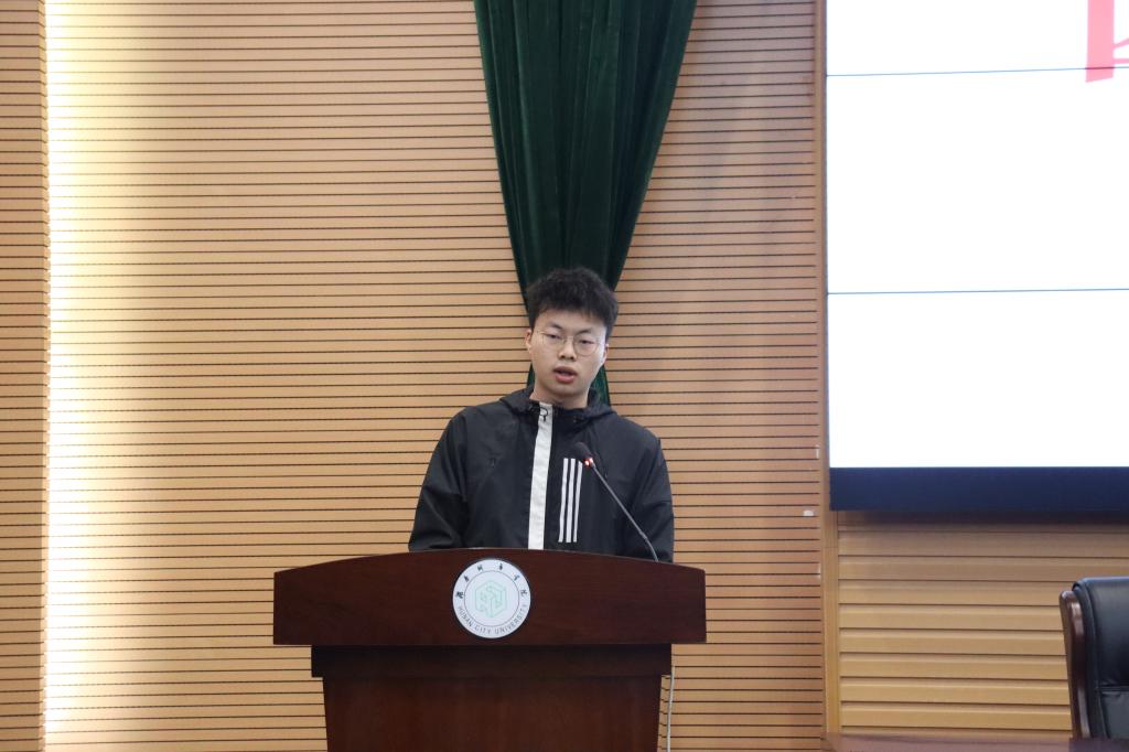 仪式第三项,团委、学生会办公室主任郑晓允、学习部副部长唐康盛、招生就业部副部长刘佳、社团部副部长喻焕璋、办公室副主任黎朕武分别讲述自己在学生会工作时期的经历与收获,并强调了学习与工作要合理协调与安排。