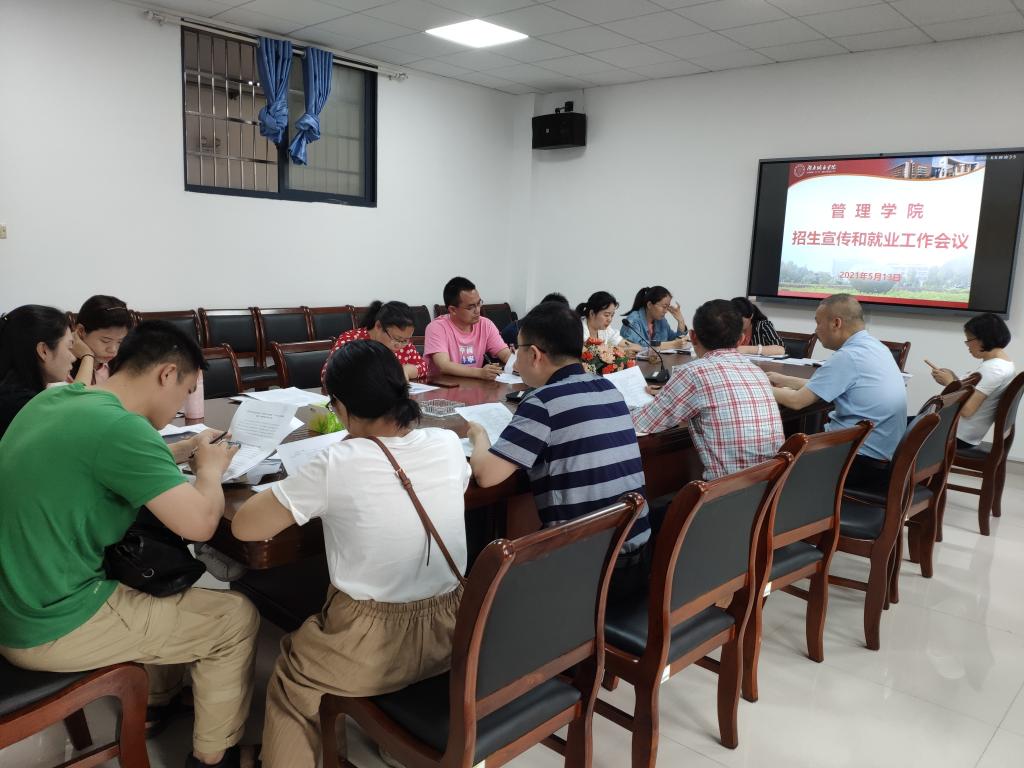 2021年5月14日下午,管理学院在管理楼622会议室召开了招生宣传和就业工作推进会议,会议由管理学院党委书记徐习军主持,学院党委副书记王润华、各教研室主任、全体辅导员老师参加会议,党委书记徐习军作重要讲话。