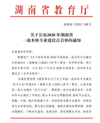 近日,教育部办公厅下发了《关于公布2020年度国家级和省级一流本科专业建设点名单的通知》)(高教厅函〔2021〕7号),我院“工程管理”专业获批国家一流本科专业建设点。房地产开发与管理专业、城市管理专业获批湖南省一流本科专业建设点。截止目前,管理学院有1个国家级、2个省级一流本科专业建设点。