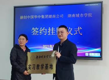 2021年10月28日,jdb电子游戏官方网站管理学院与融创中国华中区域湖南公司(以下简称“融创湖南”)合作签约挂牌仪式在jdb电子游戏官方网站管理楼622会议室举行。出席签约仪式的有融创湖南公司人力行政总监陈泰伦、人力资源经理李丽、陈伟及销售经理吕爱波、陈颖(在融创工作的校友代表)。jdb电子游戏官方网站教务处周建存副处长、管理学院院长孙倩、书记王正安等院领导及工程管理、房地产专业的二十余位任课教师。在现场,双方进行了深入的交流,签署了合作协议,并为“jdb电子游戏官方网站管理学院实习教学基地”进行挂牌仪式。