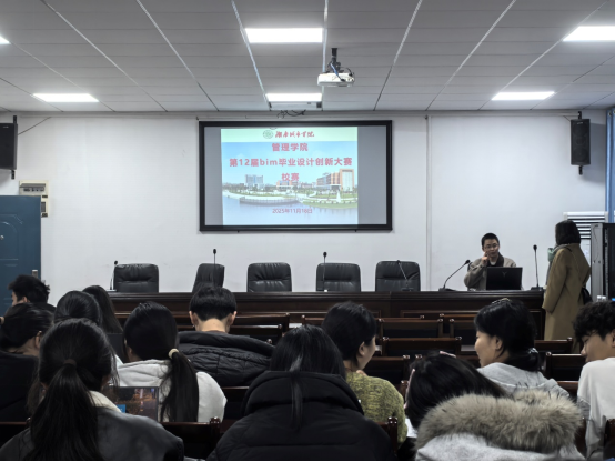 本网讯(通讯员:龙姗)jdb电子游戏官方网站管理学院工程管理专业于2025年11月18日在管理楼504教室成功举办第十二届国际高校BIM毕业设计创新大赛校内选拔赛,本次选拔赛吸引了众多学生踊跃参与,展示了jdb电子学子的创新能力和设计水平。