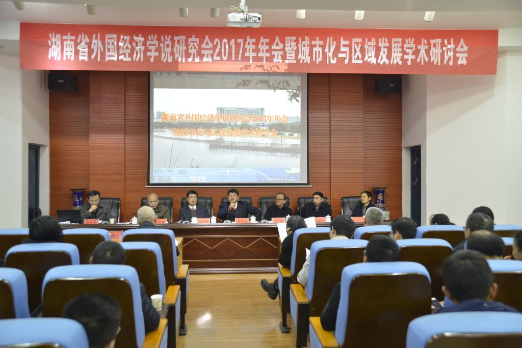 湖南省外国经济学说研究会2017年年会暨城市化与区域发展学术研讨会由湖南省社科联主办、jdb电子游戏官方网站管理学院承办,于2017年12月23日在jdb电子游戏官方网站土木楼828学术报告厅召开。会议开幕式由jdb电子游戏官方网站副校长刘辉煌教授主持,党委书记罗成翼教授致欢迎词。罗书记对专家学者们的到来表示了最热烈的欢迎,向各位专家、教授介绍了jdb电子游戏官方网站近一年来在改革与发展中取得的重要成绩以及努力的方向,并殷切希望参会青年教师和同学们能够从今天的学术盛宴中吸取养分。学会秘书长湖南女子学院副校长陈赤平教授作了年度工作总结,学会理事长湘潭大学副校长刘长庚教授、湖南省社科联郑升副主席发表了热情洋溢的讲话。
