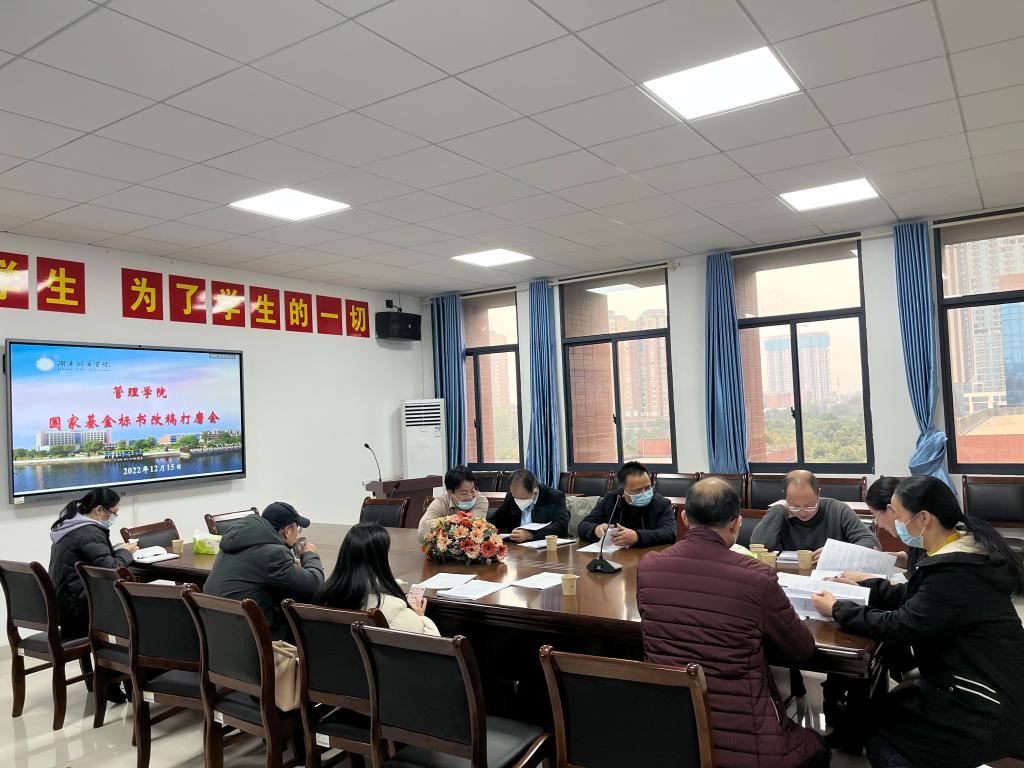 2022年12月15日下午,我院在管理楼622室召开了“2023年国家基金标书改稿打磨会”。本次会议邀请何振教授对我院8位老师的基金标书进行针对性的改稿。会议由管理学院副院长任国平主持,孙倩院长、审计处汤勇处长、科研处赵旭副处长以及学院科研团队成员参加了此次会议。