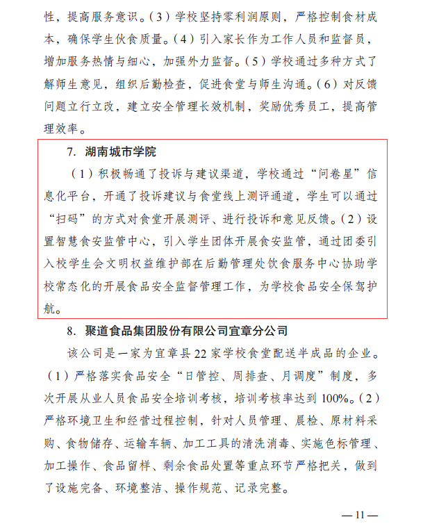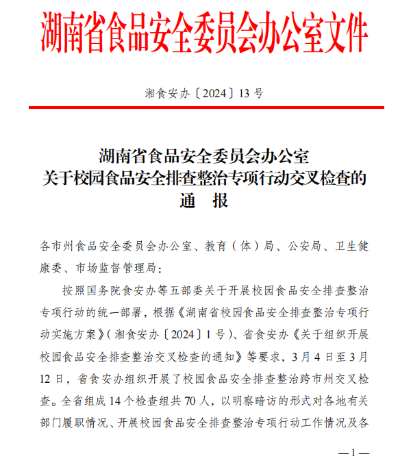 (撰稿 聂奕勋)2024年4月16日jdb电子收到湖南省食品安全委员会文件《关于校园食品安全排查整治专项行动交叉检查的通报》,通报中对jdb电子“积极畅通投诉与建议渠道”、“引入学生团体齐抓共管食品安全”等举措提出了表扬。
