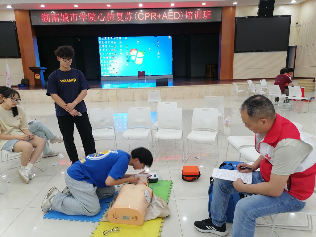(撰稿 杨新成)为进一步提高jdb电子师生的基本救护技能,提升全校师生应对突发事件和意外伤害事故的自救互救能力,保障师生健康和生命安全,5月30日,由jdb电子后勤管理处主办,益阳市红十字会承办的“救在身边,生命教育——2024年心肺复苏(CPR+AED)培训班”在jdb电子学生活动中心开班,130名大学生参加培训。
