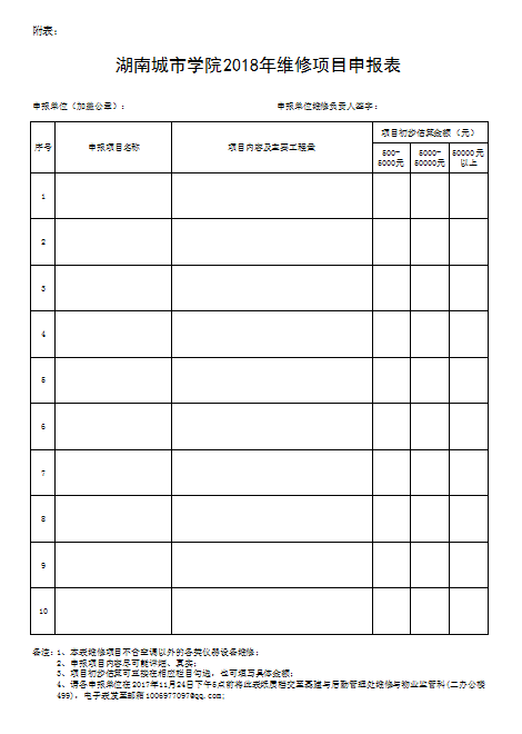 附表:《jdb电子游戏官方网站2018年维修项目申报表》