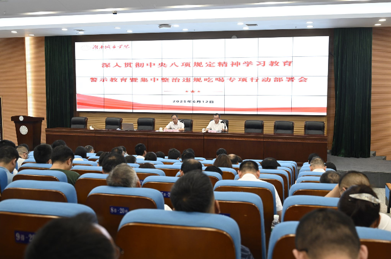 本网讯(通讯员 李玉洁)6月12日下午,jdb电子召开深入贯彻中央八项规定精神学习教育警示教育暨集中整治违规吃喝专项行动部署会。在家的校领导出席会议。