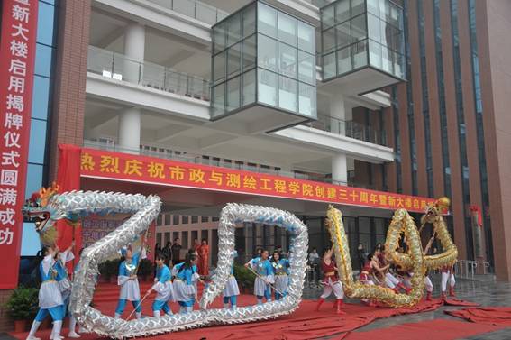 李建奇为双龙点睛,双龙飞舞,气势如虹,给活动增添了祥瑞;龚卫明在活动上致词,他代表学校党委、行政对市政与测绘工程学院的全体师生和校友表示热烈祝贺,对出席大会的领导、校友、嘉宾表示衷心的感谢。他说,从城市建设系到市政与测绘工程学院,30年薪火相传,30年春华秋实,30年的风雨铸就了市测院骄人的业绩。此次活动既是对学院三十年办学经验的全面总结,更是吹响新征程的战斗号角。