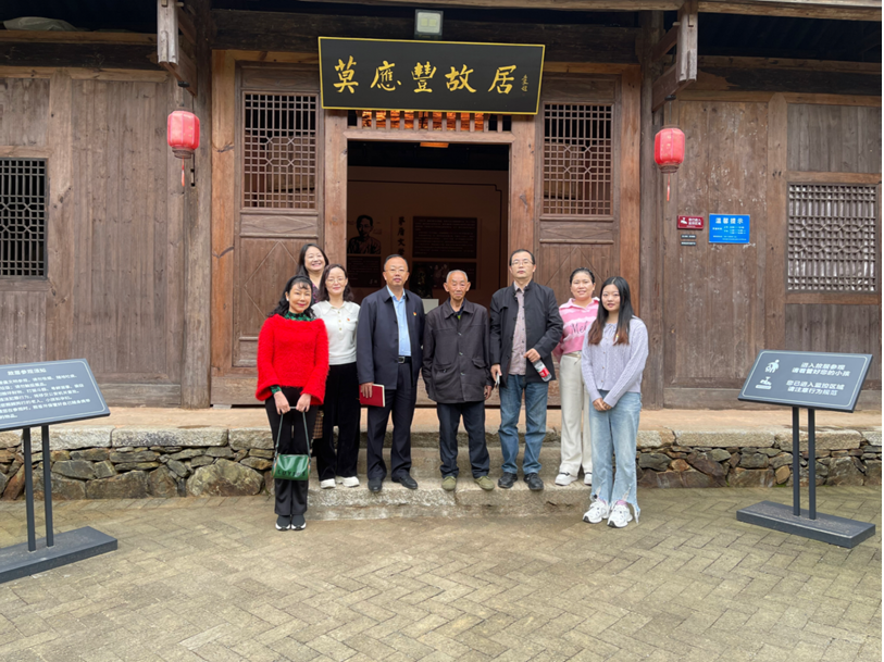 课后,在莫应丰堂弟莫太寅老人的导引下,我们参观了故居生活复刻场景和生平展览,左边三间分别是莫应丰的卧室,厨房和父母卧室。堂屋和右边三间是介绍莫应丰成长之路和他对中国文学的杰出贡献。随后,大家在故居前合影留念。
